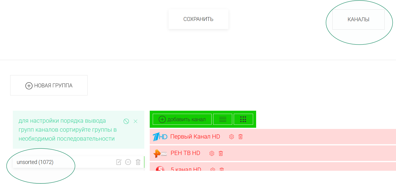 Обновление всего плейлиста можно посмотреть нажав на кнопку Каналы где будет более 1000 каналов