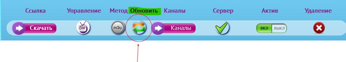 Для начала необходимо обновить список каналов Вашего плейлиста